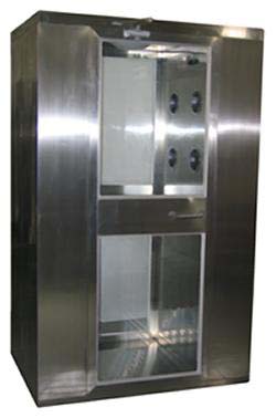 風淋室是人員進出潔凈室常用的一種凈化裝置。它可以有效的吹除人員表面的塵埃粒子,減少帶入潔凈室內的灰塵量;同時在潔凈區與非潔凈區之間起到氣閘室的作用,防止不清潔空氣侵入及保持潔凈室內氣壓穩定。以配合潔凈空調系統確保潔凈室達到所需的潔凈度。