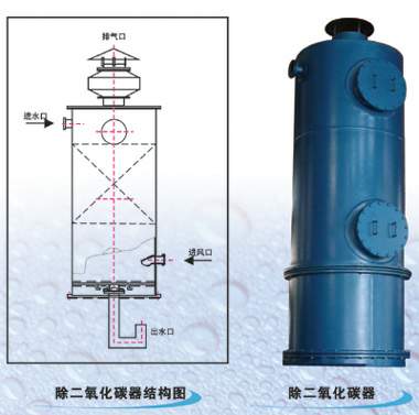 除CO2設備是用于去除在水的軟化、除鹽過程中,除二氧化碳器在離子交換水處理過程中的作用在于除去水中的二氧化碳,減輕陰離子交換的負荷,提高水處理系統的經濟性及出水水質。當原水經過氫離子交換器后,水中的重碳鹽被破壞而產生的大量游離子二氧化碳的設備,它設置于氫離子交換器之后。二氧化碳含量在330毫克/升或以下者,經除二氧化碳器以后,出水的二氧化碳含量可降低至5毫克/升左右。