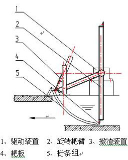 本設備通過驅動電機帶動旋轉耙臂,除污耙固結在旋轉耙臂上,隨其作回轉運動,以完成除渣動作,該設備主要由驅動裝置、旋轉耙臂、除污耙、撇渣裝置、電器控制等幾部分組成。