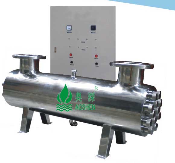 由金屬腔體、帶石英套管的紫外燈、系統(tǒng)控制柜、紫外線強度檢測儀、手動/全自動清洗系統(tǒng)組成。 腔體用不銹鋼制造,內(nèi)壁作拋光處理以提高對紫外線的反射能力和增強輻射強度。設備選型時根據(jù)水量的大小和進水水質(zhì)指標確定紫外燈管的數(shù)量,在紫外消毒腔里還增加專用設備以改變水流的狀態(tài)保證腔體中水流所照射的紫外線劑量均勻,提高消毒效果。 電控系統(tǒng):啟動和監(jiān)控紫外燈運行。可根據(jù)客戶需要配置各種先進的在線監(jiān)控儀表和遠程控制系統(tǒng)。 清洗裝置:可根據(jù)客戶需要配置機械式手動或自動清洗紫外C燈管裝置。 設備安裝:基座固定,直接串連于進、出水管道之間,采用法蘭盤或螺紋連接。 進出水管口徑和方向可根據(jù)用戶要求生產(chǎn)。