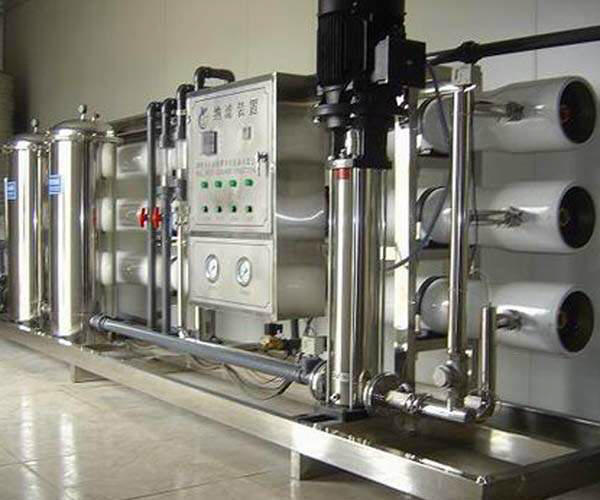 1、原水罐 (可選) 儲存原水,用于沉淀水中的大泥沙顆粒及其它可沉淀物質(zhì)。同時緩沖原水管中水壓不穩(wěn)定對水處理系統(tǒng)造成的沖擊。(如水壓過低或過高引起的壓力傳感的反應(yīng))。 2、原水泵 恒定系統(tǒng)供水壓力,穩(wěn)定供水量,確保原水經(jīng)過前面砂濾、炭濾、軟化罐后還有足夠的水量和水壓,供給高壓泵工作。 3、石英砂過濾器 采用多次過濾層的過濾器,主要目的是去除原水中含有的泥沙、鐵銹、膠體物質(zhì)、懸浮物等顆粒在20um以上的物質(zhì),可選用手動閥門控制或者全自動控制器進行反沖洗、正沖洗等一系列操作。保證設(shè)備的產(chǎn)水質(zhì)量,延長設(shè)備的使用壽命。 4、活性炭過濾器 系統(tǒng)采用果殼或椰殼活性炭過濾器,活性炭不但可吸附電解質(zhì)離子,還可進行離子交換吸附。經(jīng)活性炭吸附還可使高錳酸鉀耗氧量(COD)由15mg/L(O2)降至2~7mg/L(O2),此外,由于吸附作用使表面被吸附復(fù)制的濃度增加,因而還起到催化作用、去除水中的色素、異味、大量生化有機物、降低水的余氯值及農(nóng)藥污染物和除去水中的三鹵化物(THM)以及其它的污染物?蛇x用手動閥門控制或者全自動控制器進行反沖洗、正沖洗等一系列操作。保證設(shè)備的產(chǎn)水質(zhì)量,延長設(shè)備的使用壽命。同時,設(shè)備具有自我維護系統(tǒng),運行費用很低。 5、離子軟化系統(tǒng)/加藥系統(tǒng) (可選) 為防止?jié)馑颂貏e是納濾裝置最后一根膜組件濃水側(cè)出現(xiàn)CaCO3,MgCO3,MgSO4,CaSO4,BaSO4, SrSO4, SiSO4的濃度積大于其平衡溶解度常數(shù)而結(jié)晶析出,損壞膜原件的應(yīng)有特性 ,在進入膜組件之前,應(yīng)使用離子軟化裝置或投放適量的阻垢劑阻止碳酸鹽, SiO2,硫酸鹽的晶體析出。 6、精密(保安)過濾器 采用精密過濾器對進水中殘留的懸浮物、非曲直粒物及膠體等物質(zhì)去除,使納濾系統(tǒng)等后續(xù)設(shè)備運行更安全、更可靠。濾芯為5um熔噴濾芯、目的防止上級過濾單元,漏掉的大于5um的雜質(zhì)除去。防止進入反滲透裝置損壞膜的表面,從而損壞膜的脫鹽性能。